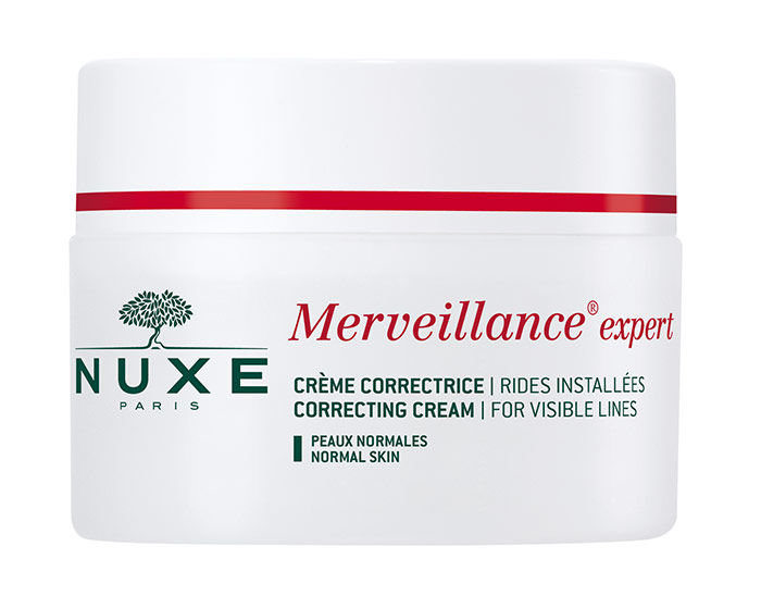 Pleťový krém **Nuxe Merveillance Visible Lines Correcting Cream**. Pleťový krém Nuxe Merveillance Visible Lines Correcting Cream viditelně redukuje výskyt vrásek a jemných linek. Vyhlazuje pokožku a hloubkově ji hydratuje. Den po dni bude Vaše pokožka pevnější a vrásky budou méně viditelné. Dopřejte své pleti luxusní péči. Vhodné pro normální pleť. **Účinky**: · bojuje proti známkám stárnutí pleti · vyhlazuje a zpevňuje pokožku · hloubkově pleť hydratuje **Použití**: Aplikujte na čistou pleť.