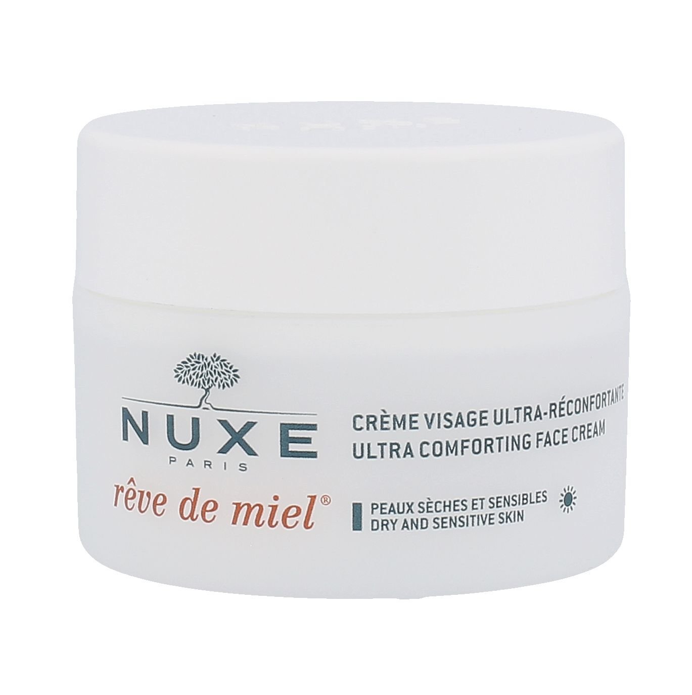 Pleťový krém **Nuxe Reve de Miel Ultra Comforting Face Cream**. Krém Nuxe Reve de Miel Ultra Comforting Face Cream šetrně pečuje o suchou a citlivou pleť. Hedvábný krém obsahuje med a vzácné oleje, které pomáhají pleť zklidňovat a hydratovat. Zabraňuje vysušování a chrání pleť před škodlivými vnějšími vlivy. Po použití bude Vaše pokožka svěží, jemná a hydratovaná. **Použití**: Aplikujte na čistou pleť.