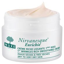 Vyhlazující pleťový krém **Nuxe Nirvanesque 1st Wrinkles Rich Smoothing Cream**. Pleťový krém Nuxe Nirvanesque 1st Wrinkles Rich Smoothing Cream vyhlazuje první vrásky a jemné linky. Navrací pleti vitalitu a pružnost. Bohaté složení pleť hloubkově vyživuje a hydratuje. Zanechává pleť svěží a zářivou. Vhodné pro suchou pleť. **Použití**: Aplikujte na čistou pleť.