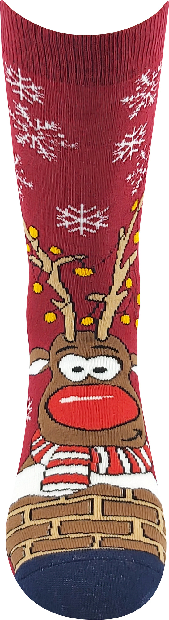 Vtipné froté ponožky Boma® RUDY I roztomilým obrázkem vánočního soba. Ponožky mají vysoký podíl bavlny a pružného elastanu. Díky tomu jsou ponožky jemné na omak, příjemné na nošení a dobře pohlcují vlhkost a zároveň dobře drží na noze. Díky měkkému froté úpletu budete mít nohy skutečně v bavlnce. Dětské, dámské a pánské ponožky jsou z příjemného teplého úpletu, vhodné na běžné nošení v chladných a sychravých dnech.
