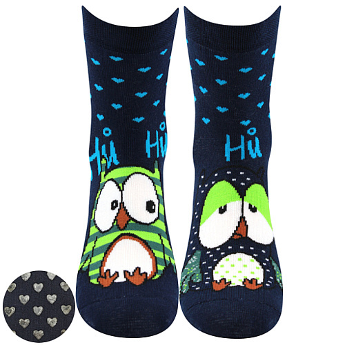 Dámské silné ponožky Boma® PRUHANA 12 ABS s roztomilými obrázky soviček. Ponožky mají vysoký podíl bavlny a pružného elastanu. Díky tomu jsou ponožky jemné na omak, příjemné na nošení, dobře pohlcují vlhkost a zároveň dobře drží na noze. Teplé ponožky jsou z jemného a měkkého froté, jsou tak velice příjemné, vhodné na běžné nošení v chladných a sychravých dnech. Chodidlo mají opatřené protiskluzovými ABS puntíky. Párování je 1 + 1, každá ponožka je jiná, ale dohromady tvoří dokonalý pár, sovička by bez té druhé nemohla být...