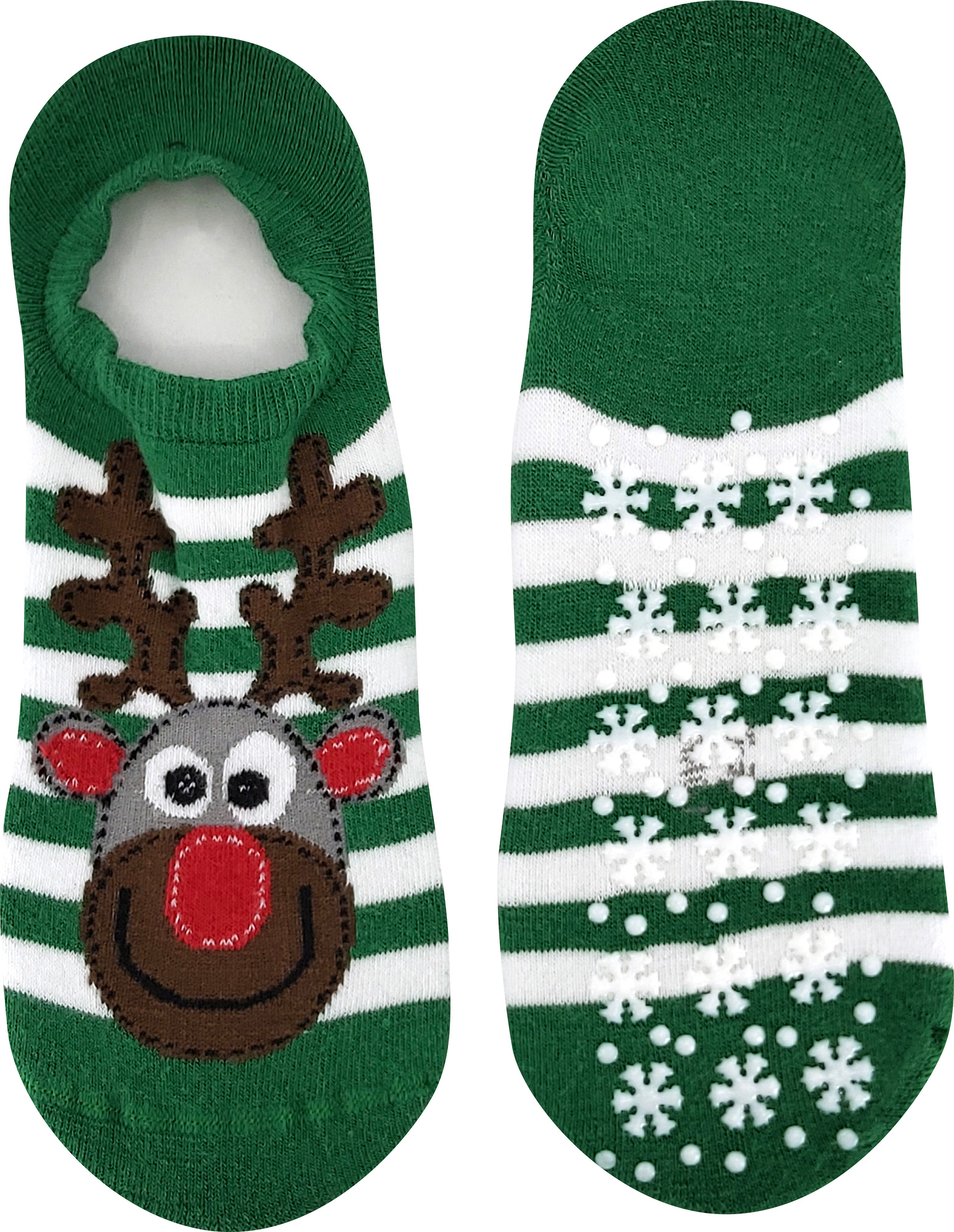 Dámské silné celofroté ponožky z bavlny Lonka® CUPID jsou extra krátké ponožky s protiskluzným ABS ve tvaru vloček na chodidle. Špice je sešitá jemným řetízkováním, spoj je tak hladký. Pruhovaný design zdobí "vánoční" motiv sobíka. Ponožky se dají nosit místo bačkor!