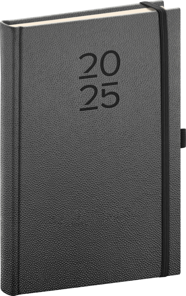 Praktickým prvkem je textilní záložka pro rychlou orientaci, perforované růžky pro snadné oddělení a prostor pro vaše osobní údaje i poznámky. To vše v elegantním černém provedení s módní ražbou čísla roku, která dává diáři nadčasový vzhled vhodný pro jakoukoli příležitost.