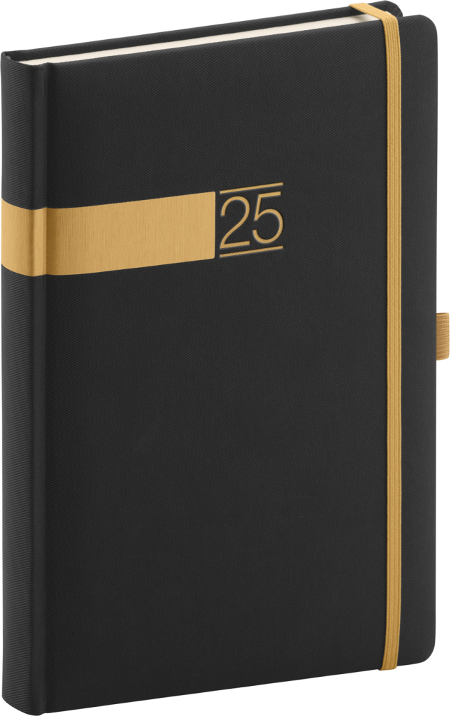 NOTIQUE Denní diář Twill 2025, černo-zlatý, 15 x 21 cm