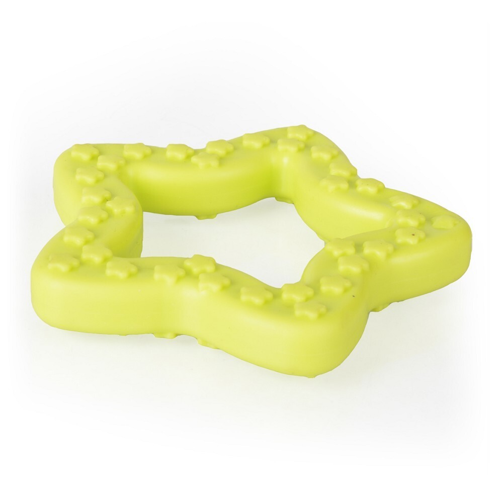 Kousací hračka vhodná pro štěňata či menší psy ve tvaru hvězdičky. Hračka napomáhá masírovat dásně psů.Barva: zelená Materiál: TPR (termoplastická guma)Průměr: 8,5 cm