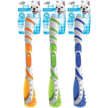 Žvýkací hračka v ergonomickém tvaru zaoblené tyče se speciálními rýhami a výstupky, umožňuje snadnější uchopení, láká ke kousání a žužlání, a tím pomáhá udržovat čisté dásně a zuby.