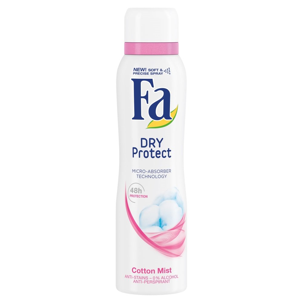 Fa Dry Protect deoprej s vůní květů bavlnovníku, ochrana až na 48 hodinTradiční německý antiperspirant s novou jemnou vůní květů z bavlnovníku, která vydrží až 48 hodin. Antiperspirant obsahuje formuli, díky které nezanechává skvrny. Bez alkoholu. Dermatologicky testováno. Balení Fa deosrpej Dry Protect obsahuje 150mlVarování:Extrémně hořlavý aerosol.Nádoba je pod tlakem: při zahřívání se může roztrhnout.Způsobuje vážné podráždění očí.Uchovávejte mimo dosah dětí.