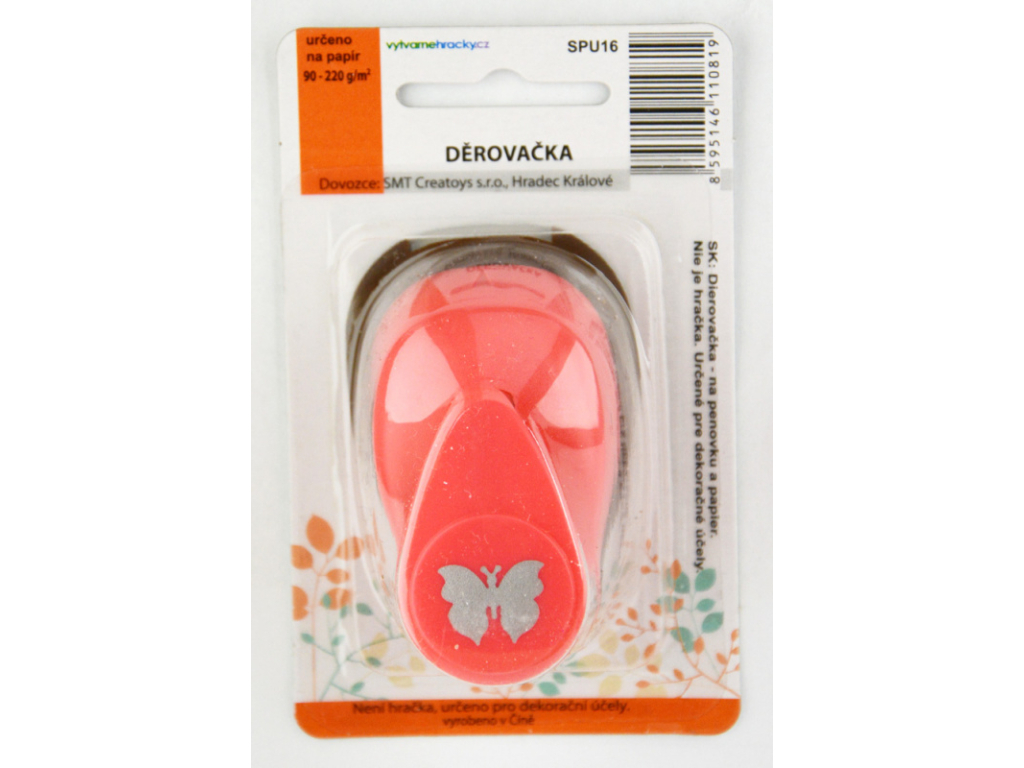 Děrovačka pro výtvarnou tvorbu. Postup: 1. pracujte s děrovačkou na pevné a rovné ploše. 2. vložte papír vhodné tloušťky - 90-220 g/m2 a zatlačte na páku statickým tlakem. Nikdy ne úderem na páku. 3. POUŽÍVEJTE POUZE NA PAPÍR. Děrovačky nikdy nepoužívejte na materiály potažené lepící vrstvou (například na samolepicí štítky), na pěnovku, na papírové ubrousky. Děrovačky nejsou vhodné pro děti do 3let.