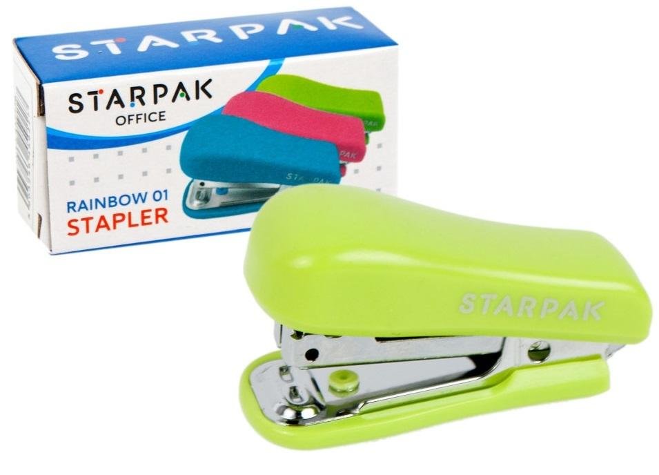 Zszywacz z kolekcji Starpak dedykowanej dla szkoły i biura. Kieszonkowy zszywacz o nowoczesnym designie. Zszywa jednorazowo do 10 kartek gramatury 80 g/m2. Do zszywacza należy stosować zszywki No. 10. Magazynek mieści 50 zszywek. Głębokość zszywania - 30 mm. Zapoznaj się również z innymi produktami Starpak dedykowanymi dla szkoły i biura! Produkt nieodpowiedni dla dzieci poniżej 3 roku życia. Pakowany w kartonowe pudełeczko. Wykonany z metalu oraz plastiku. W kolorze zielonym.