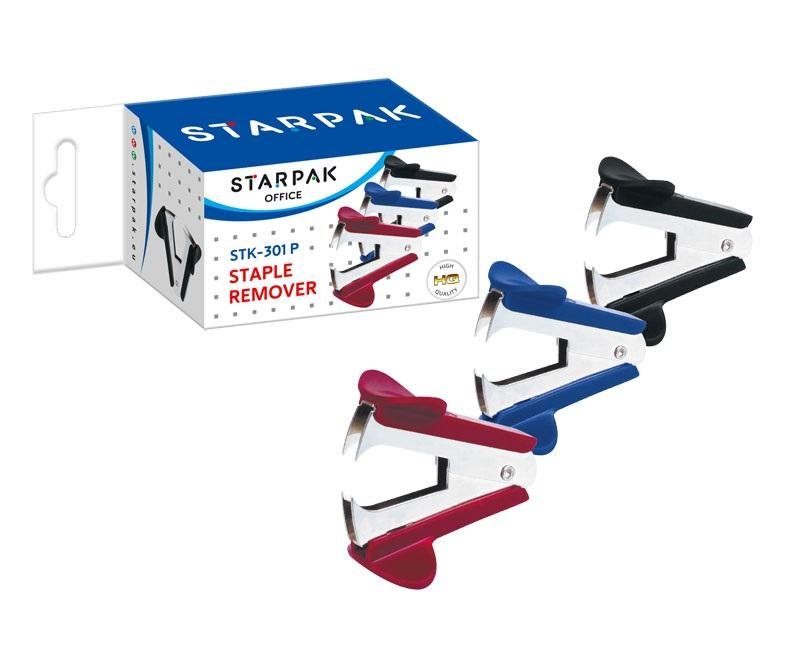 Rozszywacz uniwersalny Starpak, pasuje do większości rodzajów zszywek. Przydatny zarówno w domu jak i w biurze. Zapoznaj się również z innymi produktami Starpak dla biura! Rozszywacz metalowy posiada plastikowe uchwyty. Występuje w czarnym kolorze. Produkt nie odpowiedni dla dzieci poniżej 3 lat. Wymiary opakowania (wys.x szer.x gł.) [cm]: 4x9x4.