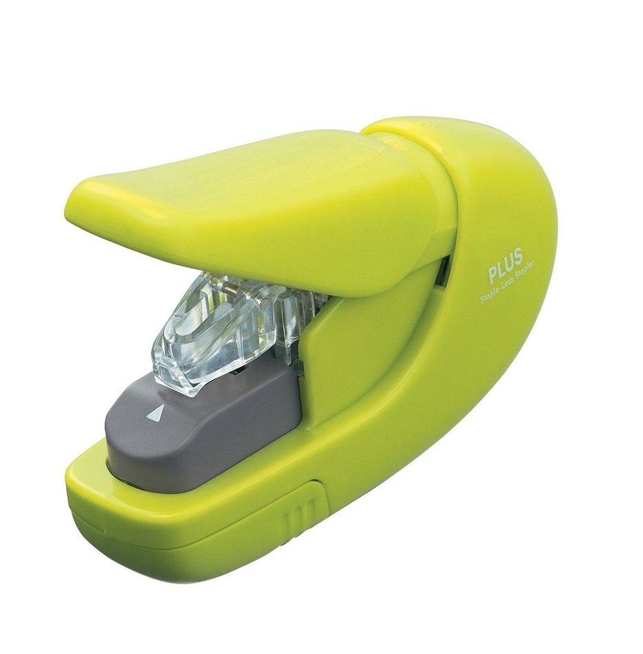Sešívačka bez drátků, zelená, manuální, 5 listů, PLUS 31146