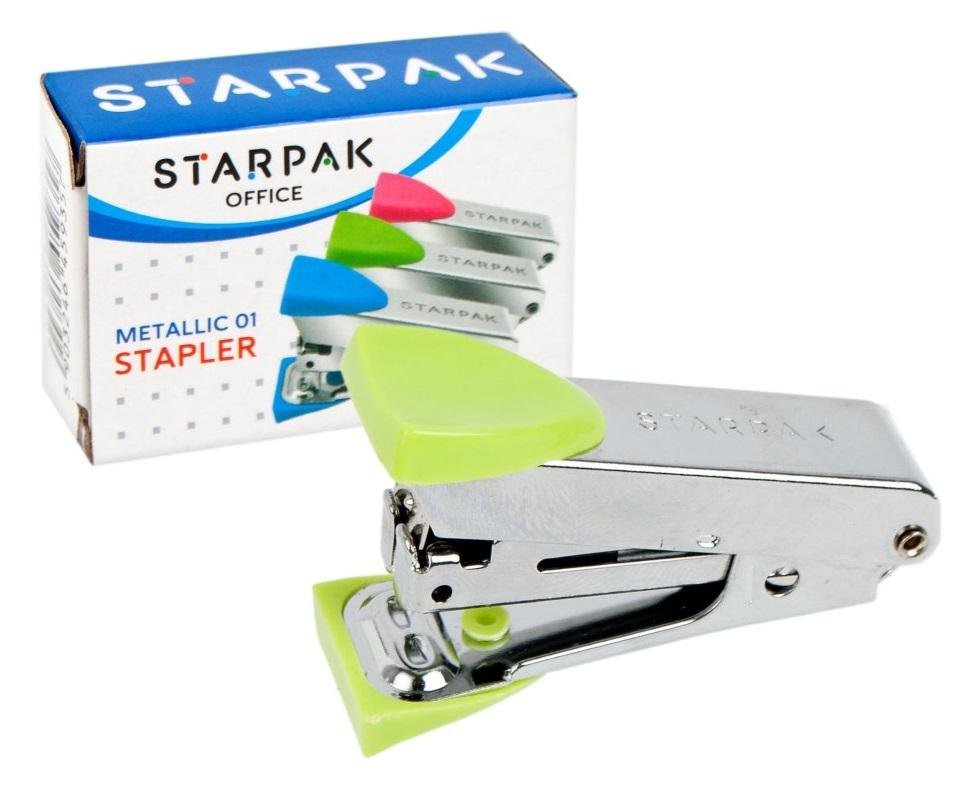 Zszywacz z kolekcji Starpak dedykowanej dla szkoły i biura. Kieszonkowy zszywacz o nowoczesnym designie. Zszywa jednorazowo do 10 kartek gramatury 80 g/m2. Do zszywacza należy stosować zszywki No. 10. Magazynek mieści 50 zszywek. Głębokość zszywania - 30 mm. Zapoznaj się również z innymi produktami Starpak dedykowanymi dla szkoły i biura! Produkt nieodpowiedni dla dzieci poniżej 3 roku życia. Pakowany w kartonowe pudełeczko. Wykonany z metalu oraz plastiku. W kolorze zielonym.