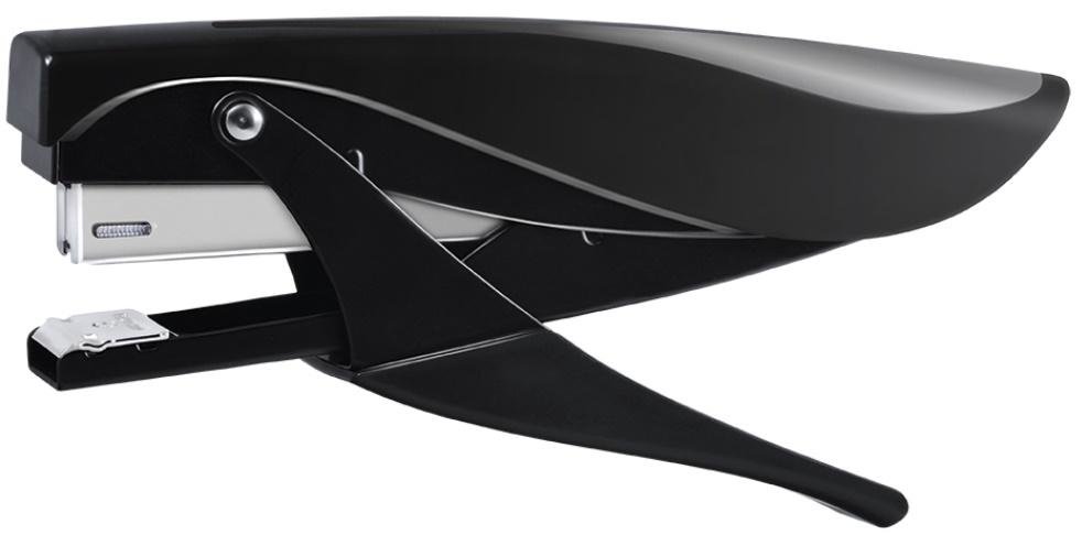 Zszywacz metalowy nożycowy z wykończeniami z tworzywa sztucznego. Części mechaniczne metalowe. Zszywanie zamknięte i otwarte. Dostosowany do zszywek o rozmiarach 24/6 - 26/6 mm. Zszywa do 25 kartek. Głębokość wsuwania kartek: 45 mm. Pojemność magazynka:150 zszywek. Kolor: czarny. Opakowanie: pudełko