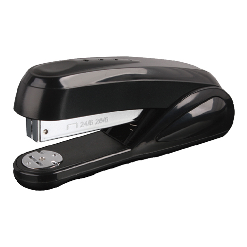 Plastová zošívačka v čiernom prevedení, výkon zošitia až do 20 listov, vhodná náplň spiniek 24/6 a 26/6. Typ zošita flat clinch - šetrí až 25% miesta ako bežný typ zošitia. Dĺžka ramena: 57 mm