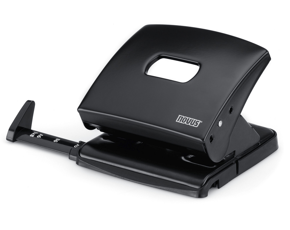 Klasická kancelářská děrovačka pro každý psací stůl. Potištěné posuvné pravítko pro snadné formátování. Dělené výklopné dno z měkké pryže usnadňuje manipulaci s odpadem. Kovový spodní díl a plastový horní díl.
