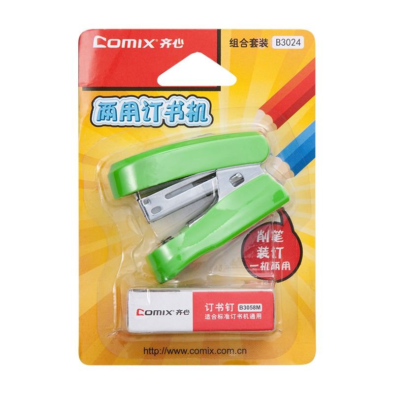 Sešívačka Comix MiniSet B3024 - Ideální pomocník do každé kanceláře a na cesty, který okouzlí svým jednoduchým vzhledem a užíváním. Díky velikosti lze snadno přenášet a vejde se téměř kamkoliv. Stabilní a odolná konstrukce, která vyniká ořezávátkem ze zadní strany.