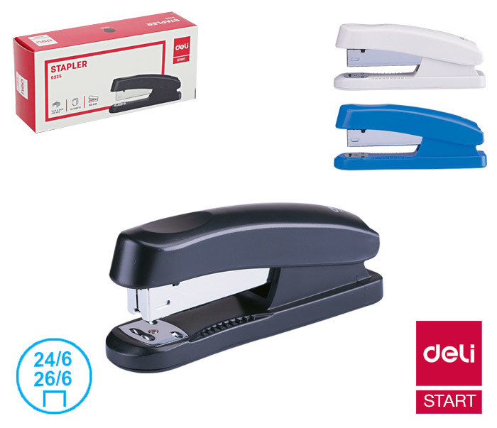 - drátky č.24/6, 26/6- sešití - 25 listů- 100 ks drátků- ukazatel množství drátků v sešívačce- otočná kovadlina- hloubka vkládání papíru 50 mm- možnosti sešívání- záruka 5 let- rozměr 123 x 56 x 33 mm- mix barev