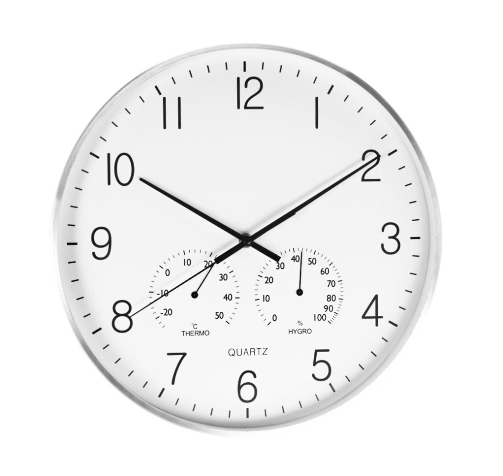 Nástěnné hodiny s teploměrem a vlhkoměrem 38 cm stříbrný rám