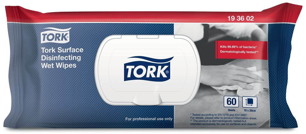 Tork vlhčené utěrky na dezinfekci povrchů jsou ideální volbou pro každodenní ochranu proti virům a bakteriím. Už během 30 sekund efektivně usmrcují 99,99 % obalených virů, včetně koronaviru, a zároveň likvidují bakterie a kvasinky. Díky tomu zajistí bezpečný a hygienicky čistý prostor ve vaší domácnosti i na pracovišti.