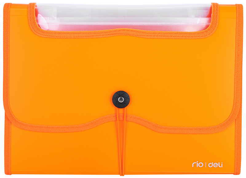 Teczka harmonijkowa z gumką 13-przegródek okno PVC Rio pomarańczowa, Deli