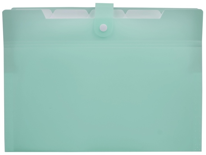 Teczka harmonijkowa A4 PP z przegródkami pastel zielony kod: THP-A4-14 - teczka harmonijkowa wykonana ze sztywnego tworzywa PP w kolorze pastelowym - wyposażona w 6 przegródek oddzielonych registrami dla łatwiejszej organizacji dokumentów - zamykana na wygodny nap zabezpieczający dokumenty przed wypadaniem - teczka dostosowana do dokumentów w formacie A4 - niezawodna w porządkowaniu i segregacji dokumentów czy notatek