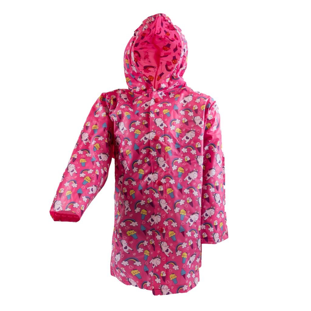 Chraňte své dítě před nepříznivým počasím s touto stylovou dívčí pláštěnkou s motivem oblíbeného jednorožce, která kombinuje praktičnost a veselý design.