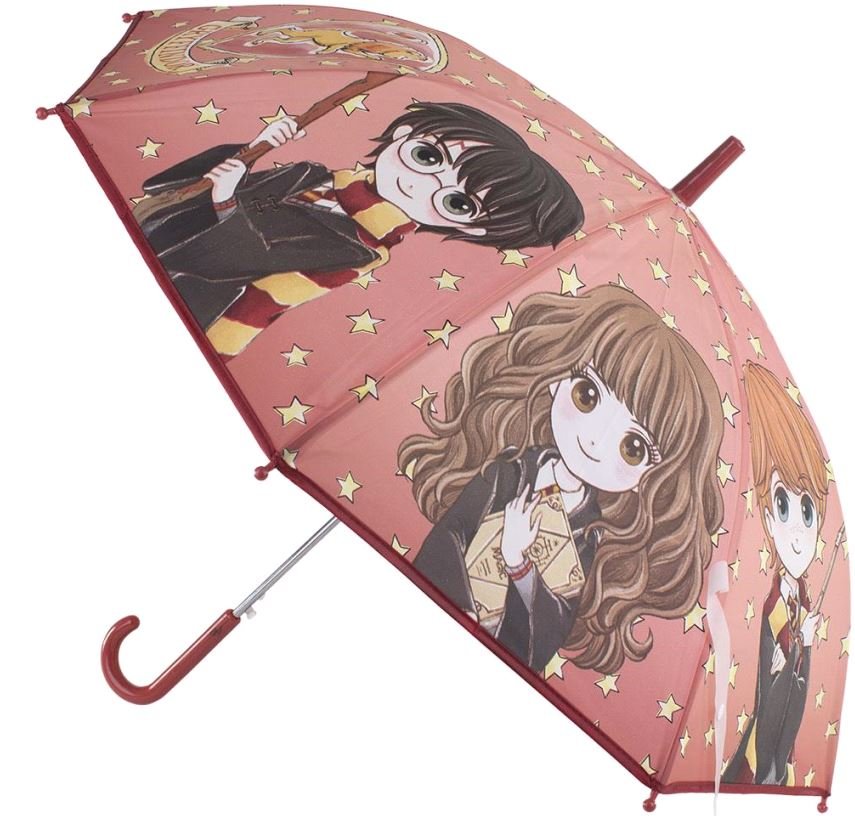Skládací deštník inspirovaný kreslenou verzí hlavních postav z filmové ságy Harry Potter.