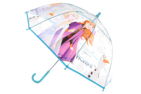Manuální deštník průhledný s motivy Frozen. Rozměry rozloženého deštníku cca 71 x 71 x 64 cm. Rozměry balení cca 64 x 8,5 x 4 cm. Baleno v igelitovém sáčku. číst celé