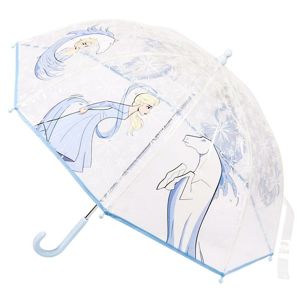 Dětský deštník Ledové království 2 průsvitný . Deštníkotevíráme i zavíráme manuálně. Velikost deštníku 45×71 cm. Vyrobeno veŠpanělsku. Materiál 100% POE.