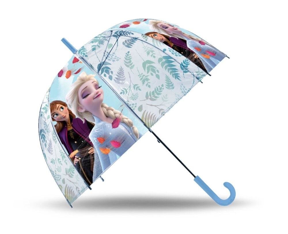 Parasolka z motywem Frozen, manualna, przezroczysta, zapewni doskonałą ochronę dziecko zarówno przed deszczem jak i słońcem. Prosta i łatwa w obsłudze.