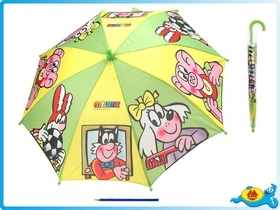 Dětský vystřelovací deštník o velikosti 56cm s obrázky známých postaviček Čtyřlístku. Deštník má umělohmotnou rukojeť. číst celé