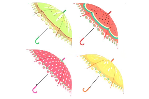 Vystřelovací deštník s motivy ovoce. Rozměry rozloženého deštníku cca 84 x 84 x 65 cm. Rozměry balení cca 65 x 8,5 x 4 cm. Baleno v igelitovém sáčku.