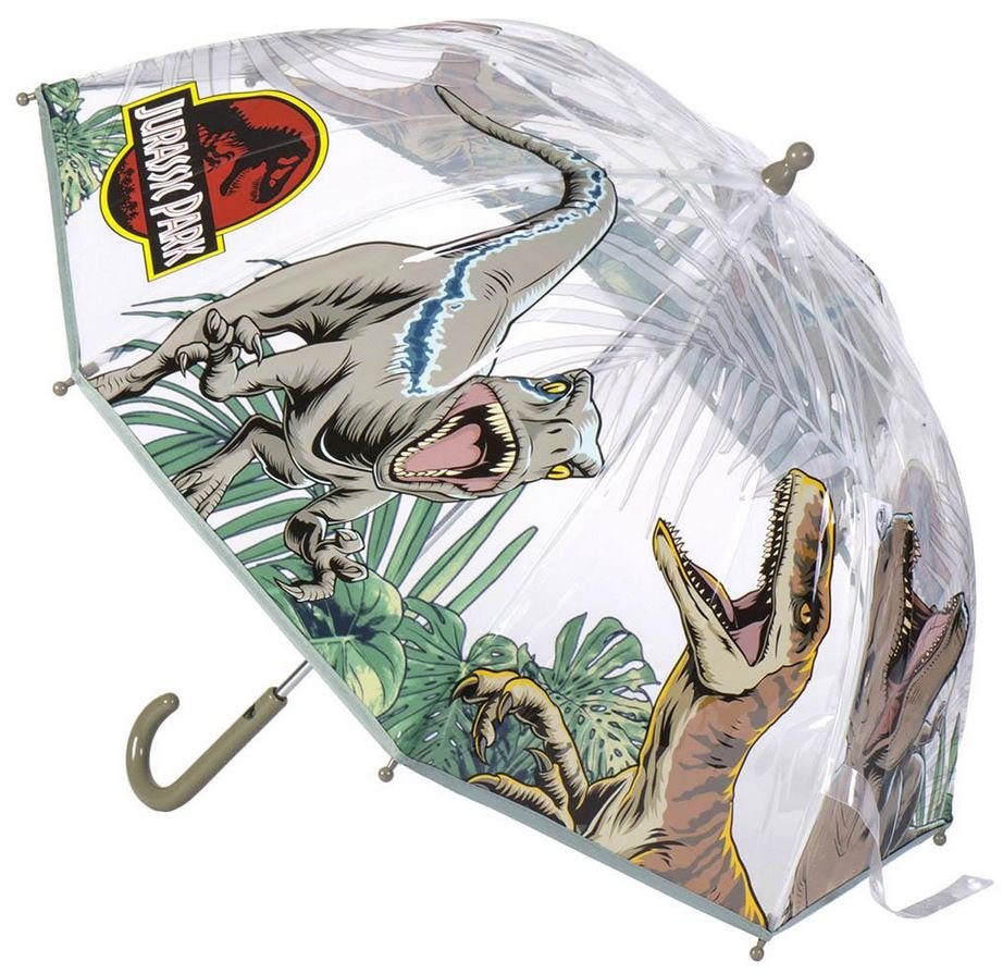 Dětský deštník Jurasic park. Deštník otevíráme i zavíráme manuálně. Velikost deštníku 45×71 cm. Vyrobeno ve Španělsku. Materiál 100% POE.