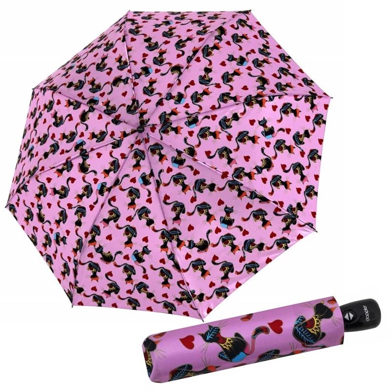 Deštník Doppler Magic Fiber Cat Lover přesvědčí svou stylovou rukojetí. Snadno se přenáší a pod velkou stříškou vás spolehlivě udrží v suchu. Kvalitní a elegantní dámský plně automatický deštník zaujme pestrým potiskem s motivem koček. Kostra deštníku je vyrobena v kombinaci materiálů ocel/sklolaminát a zaručuje pevnost a stabilitu. Je odolná proti korozi. Velká střecha s osmi pruty je vodoodpudivá a stabilní a odolá enormnímu zatížení větrem. Při přetočení deštníku nedojde k jeho poškození. Potah z pongee má matný vzhled a je odolný proti změnám vlhkosti, teplot a nesráží se. Deštník lze složit a přepravovat v ochranném obalu, takže se vejde do každé tašky. Skutečný pomocník na celý den - to je dopplerovský Magic Fiber!