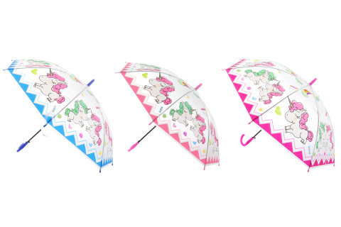 Vystřelovací deštník s motivy jednorožců. Rozměry rozloženého deštníku cca 86 x 86 x 66 cm. Rozměry balení cca 66 x 9 x 4 cm. Baleno v igelitovém sáčku. číst celé