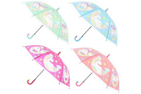 Vystřelovací deštník s motivy jednorožců. Rozměry rozloženého deštníku cca 83,5 x 83,5 x 66 cm. Rozměry balení cca 66 x 9,5 x 4 cm. Baleno v igelitovém sáčku. číst celé