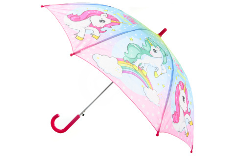 Vystřelovací deštník s motivy jednorožců. Rozměry rozloženého deštníku cca 80 x 80 x 65 cm. Rozměry balení cca 65 x 8,5 x 4 cm. Baleno v igelitovém sáčku.