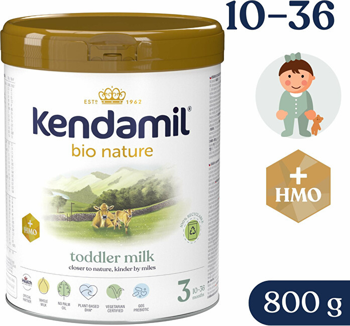 Kendamil BIO Nature 3 HMO+ je pokračovací mléčná kojenecká výživa v prášku. Potravina je určená pro výživu kojenců od ukončeného 10. do 36. měsíce.