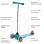 Jedinečnost této koloběžky je v jednoduchém speciálním mechanismu, který nakloněním řídící tyče a přenesením váhy zatáčí. Děti velmi rychle pochopí princip zatáčení této koloběžky a mohou se tak ihned zapojit do "závodů" se staršími dětmi a sourozenci. Mini Micro lze jednoduše složit vysunutím celé řídící tyče z nášlapné desky.