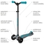 Maxi Micro Deluxe Pro grey-aqua je bezpečná, stabilní a zábavná koloběžka v černo-červené barvě, určená pro starší děti, juniory a teenagery s doporučenou nosností do 50 kg.