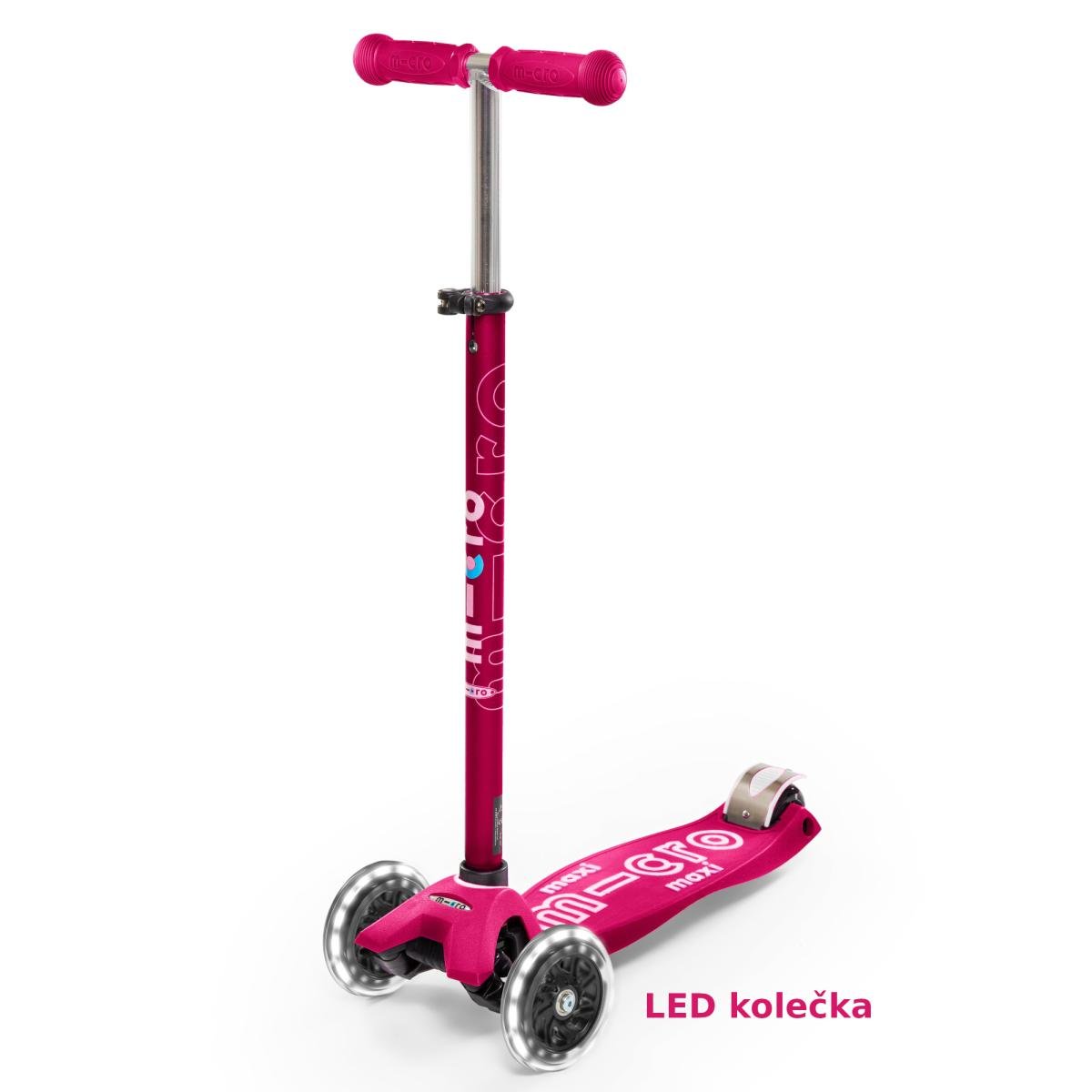 Maxi Micro Deluxe LED Pink je bezpečná, stabilní a zábavná koloběžka v růžové barvě, určená pro starší děti, juniory a teenagery s doporučenou nosností do 50 kg.