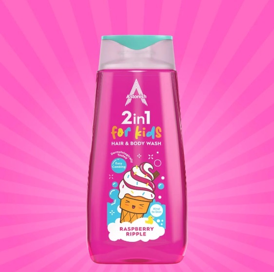 Sprchový gel a šampon 2v1 pro děti s vůní malin a vanilky 400ml Astonish