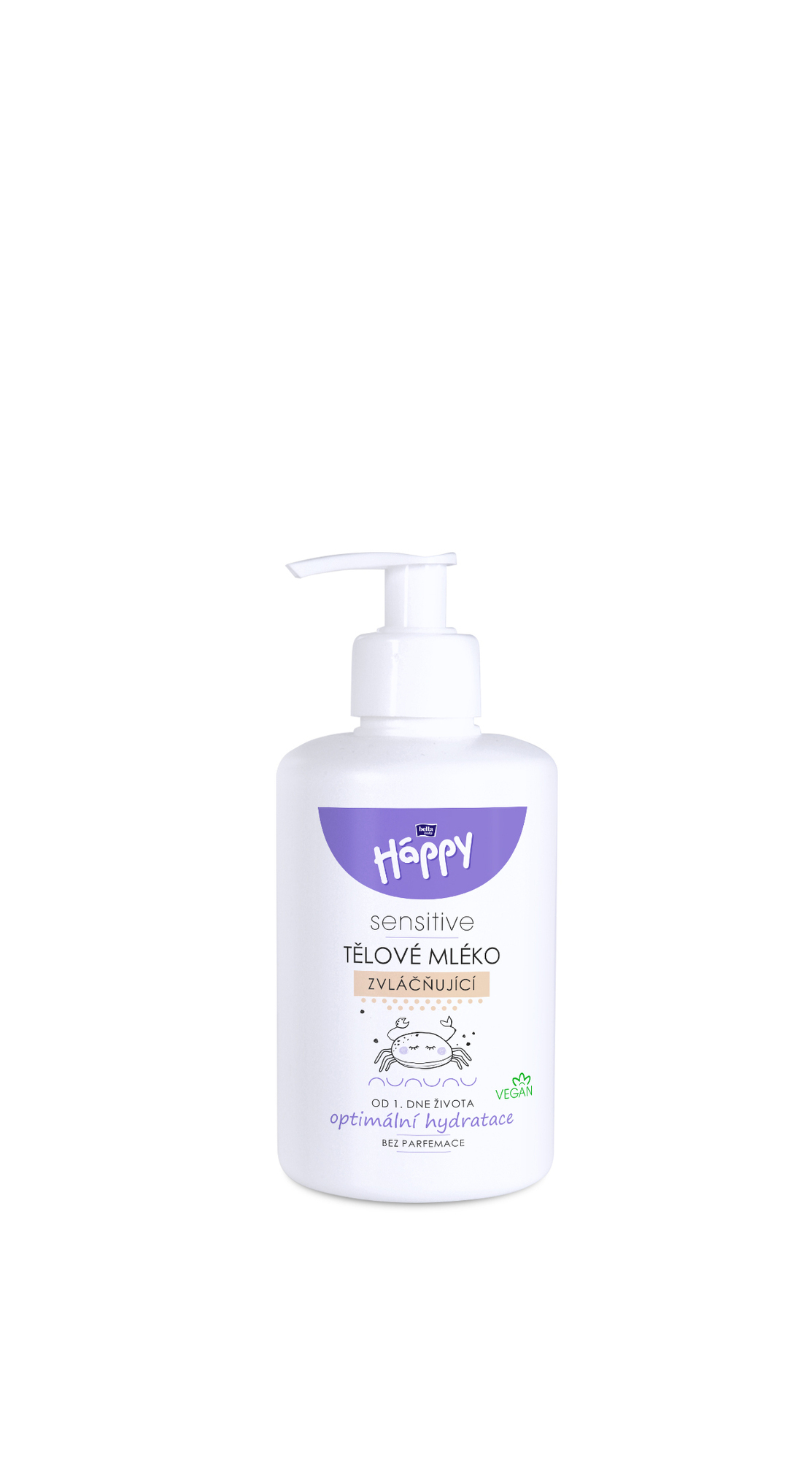 Tělové mléko intenzivně hydratuje a promašťuje pokožku. Rychle se vstřebává, aniž by zanechávalo mastný film. Díky svému složení je ideální pro jemnou masáž novorozence. Vhodné také pro citlivou pokožku se sklonem k atopii.