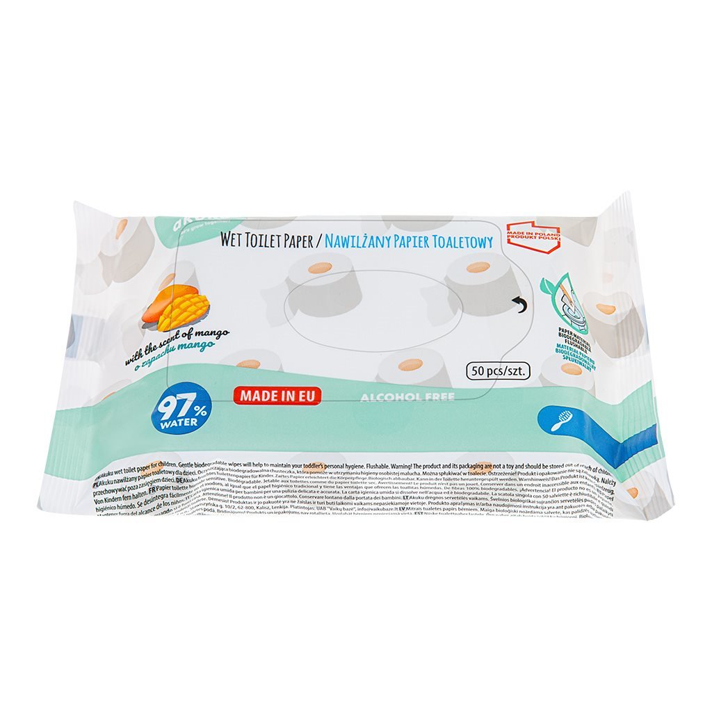 Vlhčený toaletní papír s vůní manga Akuku 97% vody 50ks