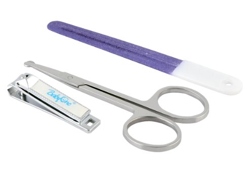 - Sada obsahuje: nůžky s bezpečnou zaoblenou koncovkou, kleštičky na nehty, jemný pilník.