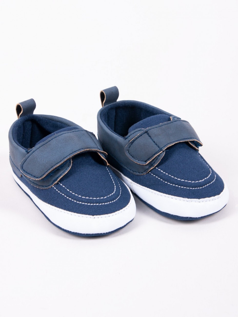 Śliczne chłopięce buciki w kolorze granatowym. Wykonane z połączenia dwóch różnych materiałów, dzięki czemu posiadają niebanalny wygląd. Wspaniale sprawdzą się do codziennych stylizacji. Dzięki zapinaniu na rzep, idealnie dopasowują się do stopy dziecka.