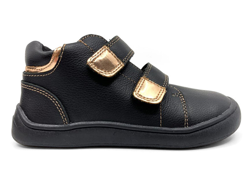 Dětská barefootová vycházková obuv Gara je elegantní, kožená obuv pro celoroční nošení. Podrážka je ohebná, gumová, s jemným vzorkem, v černé barvě. Mají zapínání na dva velcro pásky. Jedním přitáhnete ke kotníku a druhý nastavíte přes nárt dle potřeby.