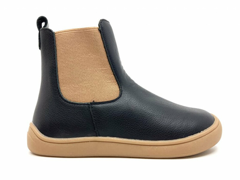 Dětská barefootová vycházková obuv Tita terakota jsou dívčí polokozačky z hladké kůže v černé barvě s béžovou podrážkou. Na vnitřní straně je zip pro snadné nazouvání. Na vnější straně kotníku je silná guma pro pohodlný pohyb. Mají podšívku i stélku z hřejivého fleecu, proto jsou ideální na podzim.