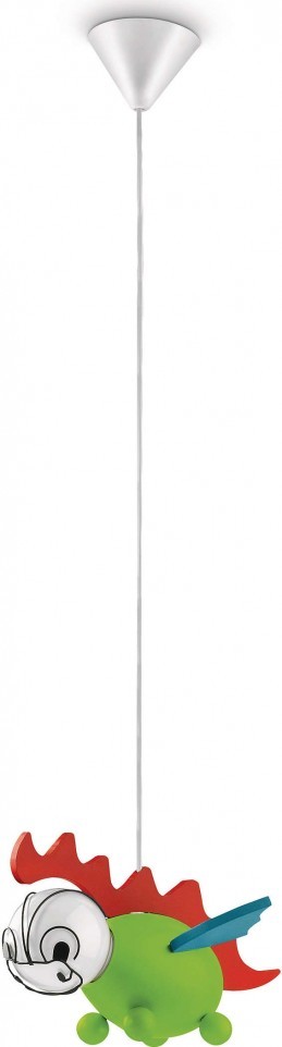 Veselé dětské závěsné svítidlo produktové řady Kiko Massive ve tvaru létajícího zeleného dráčka oživí dětský pokoj a udělá radost malému dobrodruhovi, kterému bude svítit při jeho hrách plných fantazie. Dráček je vyrobený ze dřeva v zelené, modré a červené barvě, obličej je tvořen drátkem s žárovkovou hlavou. Klasická žárovka pro patici E27 s maximálním příkonem 1 x 60 W je součástí balení. Její svit je v příjemné teplé bílé barvě s rozptýleným efektem. Pro úsporu energie je možné ji nahradit úspornou nebo LED žárovkou. Kvalita provedení a použitých materiálů jsou zárukou dlouhé životnosti a v souladu s bezpečím dětí. Délka zavěšení je libovolně nastavitelná při instalaci až do 150 cm. Stupeň krytí má hodnotou IP20 pro interiéry. Krytí IP20 Interiérová svítidla jsou vyrobena pro použití v domácnosti, kanceláři nebo v jiných vnitřních prostorách. Označení krytí stupněm IP vyjadřuje dva údaje. Prvním je stupeň ochrany proti prachu a druhým proti vodě. Svítidla s krytím IP20 jsou chráněna proti vniknutí pevných cizích těles o průměru 12,5 mm a větších a před dotykem prstem. Proti vodě nejsou chráněna. Toto krytí je nejčastějším pro zařízení určených pro interiéry.
