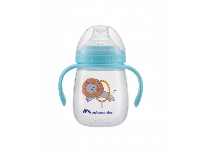 Hrnek s měkkým silikonovým pítkem pomáhá přechodu dítěte z lahvičky se savičkou na hrnek s pítkem. Měkký materiál pítka je ideální pro citlivé dásně dítěte při prořezávání prvních zoubků. Membrána v pítku brání vytečení při náhodném převržení hrnku. Držadla mají tvar pro snadné uchopení malými dětskými ručičkami. Odnímatelné víčko chrání čistotu savičky či pítka na cestách. Neobsahuje bisfenol A. Vhodné pro děti od 6 měsíců.